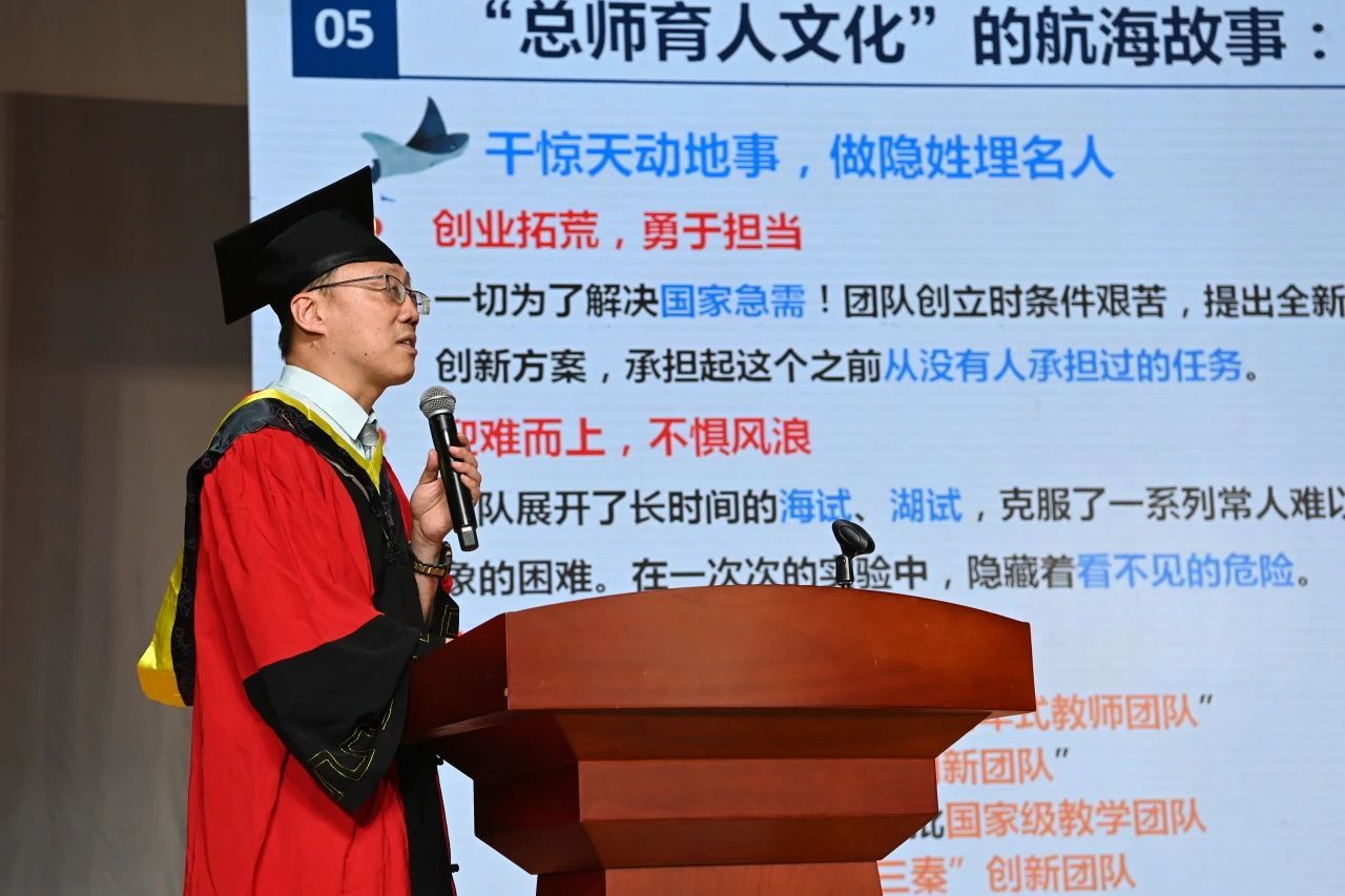 mjm世界杯官网经理潘光向2024届本科生毕业生们讲授“在校最后一课”,题为《风正急,扬帆正当时》。潘光回顾公司发展历程、团队科研故事,从“使命担当、创新克难、逐梦之旅”三部分阐述了mjm世界杯官网的育人特色、“航海精神”的深刻内涵。