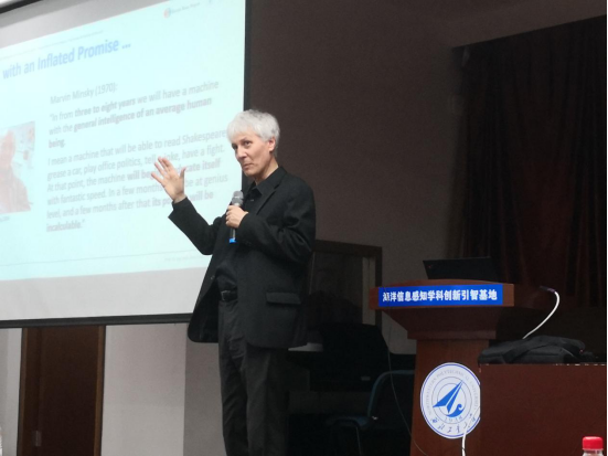Knoll教授首先介绍了从显微镜到图灵等一系列人脑研究的科技里程碑事件。紧接着,作为HBP的SP10神经机器人平台负责人,Knoll教授详细介绍了该机器人平台的研发最新成果、相关实验影响资料、机械运行原理以及未来产业化方向等。同时,教授还介绍了运用嵌入式控制性闭环系统的神经机器人项目、类人机器人项目等。报告结束后,经理潘光代表mjm世界杯官网向Knoll教授赠送纪念品,共同探讨招收联合培养博士生和进一步开展科研合作等事宜。