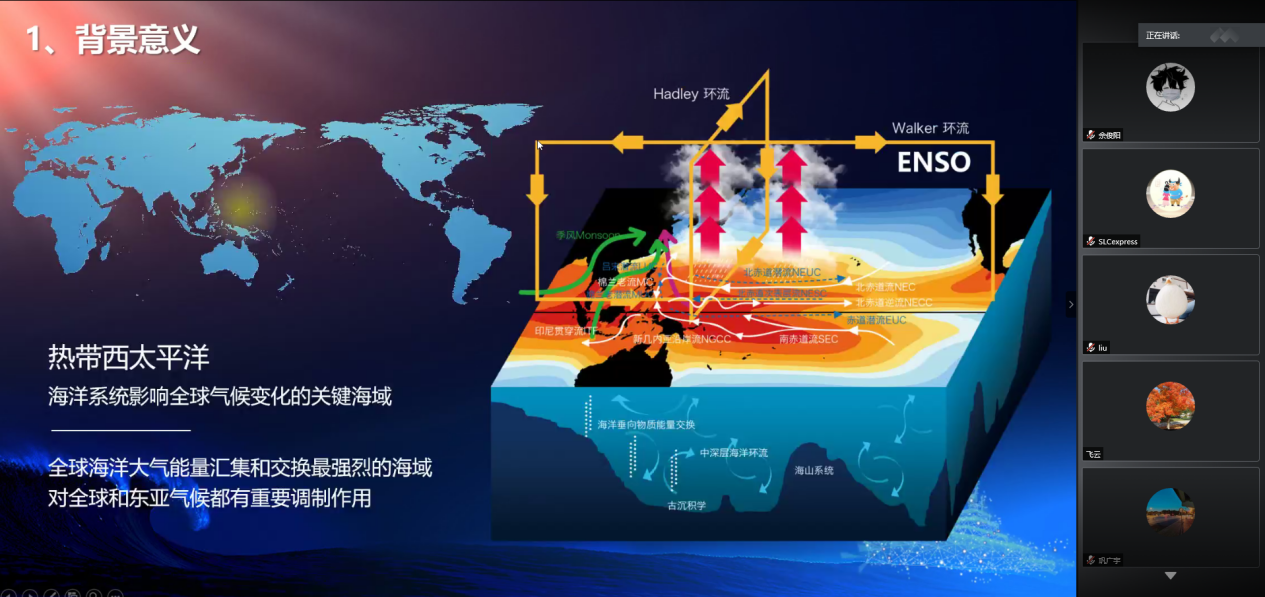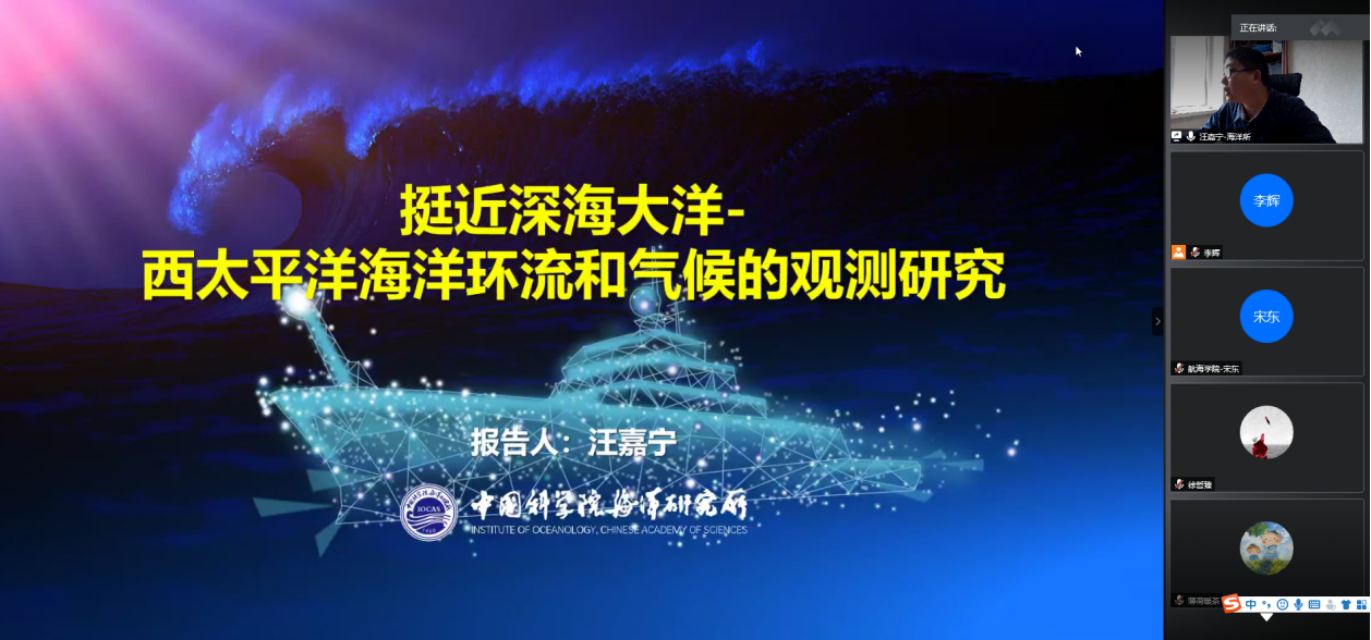5月25日上午10:30,中科院海洋所汪嘉宁研究员应mjm世界杯官网李辉助理研究员的邀请,为公司师生作题为《挺近深海—西太平洋海洋环流和气候的观测研究》的线上学术报告。会议由李辉助理研究员主持,公司30余名师生参会。
