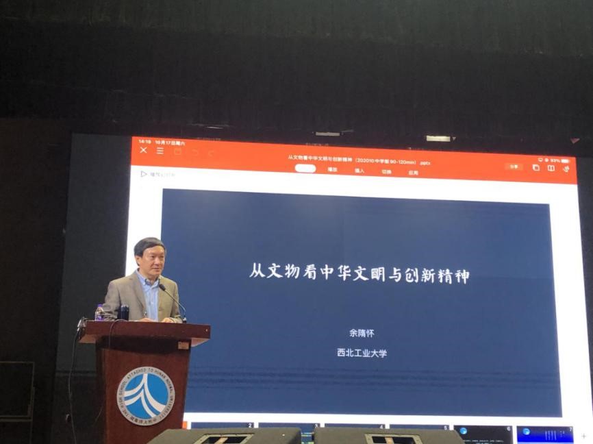 机电公司余隋怀教授做客湖南师大附中惟一大讲坛,为全体高一员工做了题为《从文物看中华文明和创新精神》的讲座。余老师带领潇湘学子穿越中华千年文明,从文物中品味中华文化盛宴。从仰韶时期马家窑彩陶的奇妙漩涡,到殷商、西周时期甲骨文、金文的“师法自然”,再到四合院等古代建筑的“天人合一”;从秦代制与器的威严、强盛,到汉代造物的“以人为本”,再到盛唐的开放与繁荣,余教授带领大家在中华历史的长河中穿梭,用大量的史料与文物展示了中华文明与器物的瑰丽与震撼。五星出东方,为开来而继往。“我们比历史上任何一个时期都更接近中华民族的伟大复兴。”余隋怀勉励学子勇接时代火炬,在批判中继承,在继承中发展,尽己之力点燃文化之火,肩负起时代使命,做有素质、会创新、傲立于世界文化之巅的新青年。“只有唤醒古老中国蕴藏的能量,在现代语境下复苏,才能带动起整个东方文明。我们要呈现于世的不是甜品,而是盛宴。”