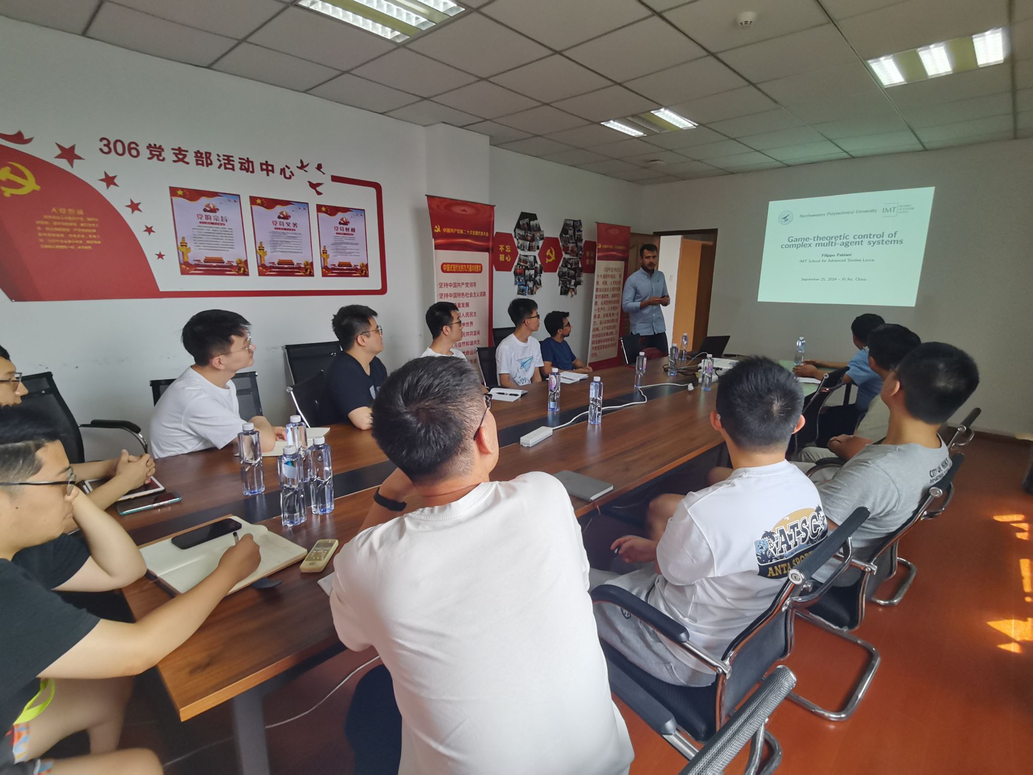 9月25日,意大利卢卡IMT高等研究公司Filippo Fabiani 教授应mjm世界杯官网李乐副教授的邀请,在公司517会议室,为公司师生作“Game-theoretic control of complex multi-agent systems”为主题的报告。会议由李乐副教授主持,公司20余名师生参会。