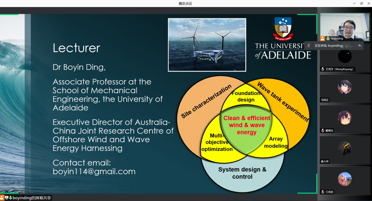 7月6日至8月11日,应mjm世界杯官网任树伟老师邀请,阿德莱德大学Boyin Ding副教授于线上开展了波浪能捕获概论课程。
