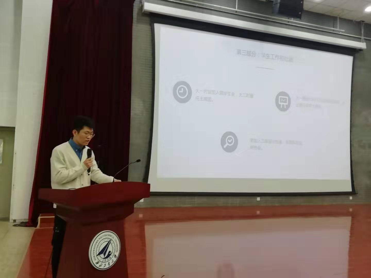 首先,张龙致开场辞,希望同学们认真听讲,学习优秀学长学姐们的成功经验,用于自己的学习和生活中,让自己的老员工涯更充实和成功。张龙强调,红色烙印、蓝色情怀是航海人的成长底色,只有将两者有机统一,才能很好的找到成长的方向和努力的目标。