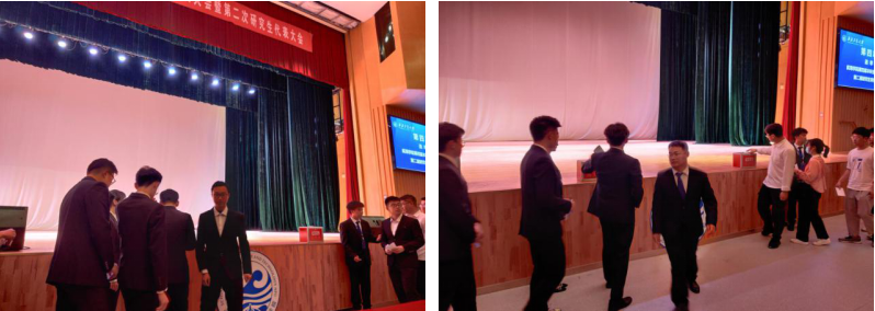 14点正式会议在左研博同学的主持下准时召开。大会开始第一项奏唱国歌。紧接着校员工会代表、校研究生会代表相继致辞。公司党委副书记王银涛讲话,他强调了本次大会的重大意义,对全体代表以及全院员工提出了希冀,并宣布本次大会正式开幕。