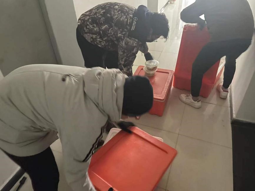 在校内,团队成员积极响应公司公司号召,不仅在基础防疫工作中担任志愿者,例如自觉担任送餐服务志愿者、洗浴值班志愿者、出门检查票据志愿者等。同时还报名参加公司紧缺岗位的机动志愿服务,参与公司防疫工作,例如核酸检测志愿者,食堂值班志愿者,生活和防疫物资发放志愿者等等。而这繁琐却不平凡的志愿服务,也锻炼了党员同志的心智。