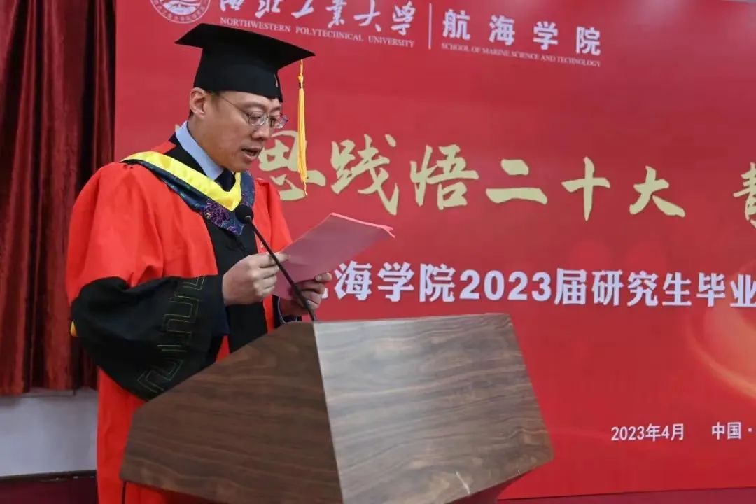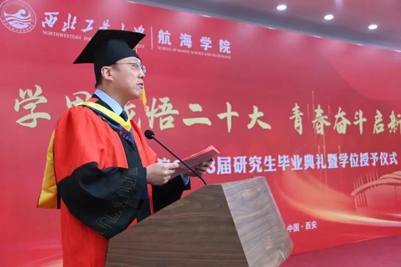 同学们,诗人泰戈尔说:“无论黄昏把树的影子拉得多长,它总是和根连在一起。”无论你们身处何地,身居何位,请你们相信,在前进的路上,母校会一直关注、支持、祝福你们。希望你们将牢记“公诚勇毅”校训、“三实一新”校风,牢记“敢为人先、攻坚克难、团结协作、无私奉献”的“航海”精神,走向人生广阔舞台,带着工大海院学子身份的骄傲,迈上人生灿烂征途的新起点!心之所往,一路繁花似锦,行之所至,万里星河璀璨。