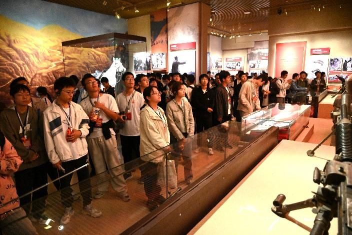 步入历史长廊,感悟家国情怀。 实践队走进延安革命纪念馆。在1.43万平方米的恢弘展陈中,2500余件珍贵文物与1400余张历史照片,共同构筑起一段波澜壮阔的革命记忆长廊。师生们驻足凝视,透过一件件实物、一幅幅影像,仿佛穿越时空,重回那段烽火硝烟、浴血奋战的峥嵘岁月,深刻感受到革命先辈为民族解放事业展现出的坚定信念与英勇无畏。