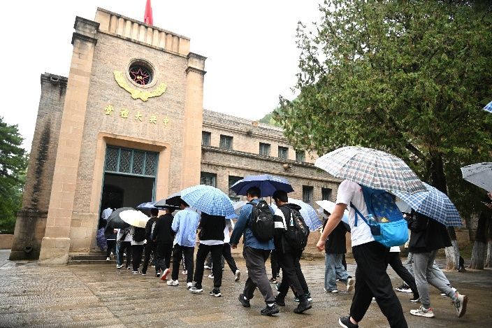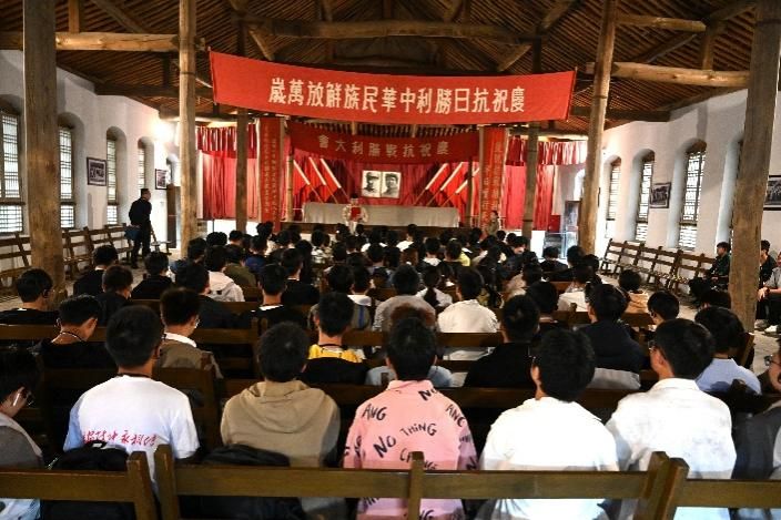 寻迹红色热土,感悟精神伟力。 9月27日中午,实践团队顺利抵达延安,在这片孕育中国革命的圣地上,开启了沉浸式红色探访之旅。首站杨家岭革命旧址中,中央大礼堂在苍松翠柏的环抱间巍然矗立,礼堂内陈设如旧,仿佛仍在回响着中共七大时指引方向的历史强音。随后,师生们走进毛泽东、朱德等老一辈革命家曾经居住的窑洞,目睹简朴至极的生活用具,真切感受到艰苦岁月里共产党人那份坚定的理想信念与“自力更生、艰苦奋斗”的崇高精神,大家对延安精神的内涵有了更为深刻和具象的理解。