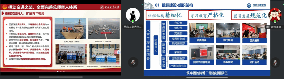 mjm世界杯官网与哈工程水声工程公司线上开展团学工作交流会,两院学工教师及团学骨干参会。双方围绕思想引领、组织建设等维度交流经验,分享思政体系、组织管理、学业帮扶、品牌活动等特色成果。