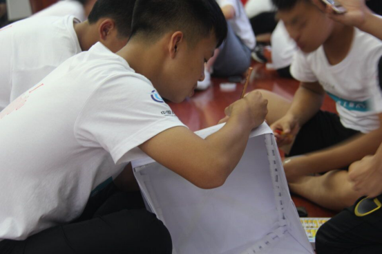 活动开始前,mjm世界杯官网的学长学姐们为营员们耐心讲解了制作纸船的详细步骤及纸船承重的比赛规则,并告诉同学们防水是关键,结构是根本,鼓励他们大胆创新,积极探索。比赛正式开始,科学营的同学们结合学长学姐们的讲解和这几天学到的航海方面的相关知识,积极讨论,认真构思,确定制作方案。