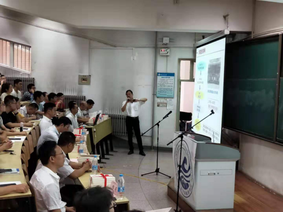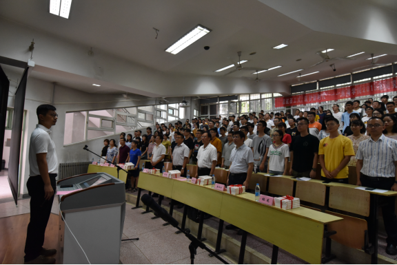 仪式开始前,全体新生观看了反映公司建设成就的短视频。见面会暨赠书仪式第一项,全体师生起立齐唱国歌,整个会场气氛庄严肃穆,歌声嘹亮,气势磅礴。第二项,潘光经理发表了热情洋溢的欢迎词。他代表公司党委、机关及全体教职工,向2019级研究生新生的到来表示热烈欢迎,并向同学们介绍了公司的基本情况,回顾了近年来公司在团队建设、教学科研、人才培养、创新创业、对外合作等方面取得的成绩,并引用现代诗句作为结束语与同学们共勉——“未来,就是你站在茫茫大海的这一边,遥望着海的那一边,充满好奇心,憧憬这对海那边的向往,正是对未知的不了解与向往,所以才有了去追逐未来的勇气”。