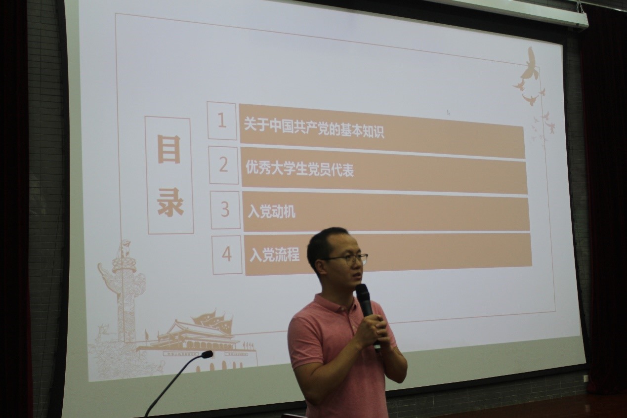 慰问开始前,mjm世界杯官网本科生F1辅导员任树伟首先进行了老员工入党宣介,介绍了党的基本知识和入党流程等相关信息。任老师系统全面地讲解了老员工入党的相关注意事项,介绍了公司优秀老员工党员代表,充分调动了同学们的入党积极性,并让广大新生同学明白了具体如何积极向党组织靠拢。