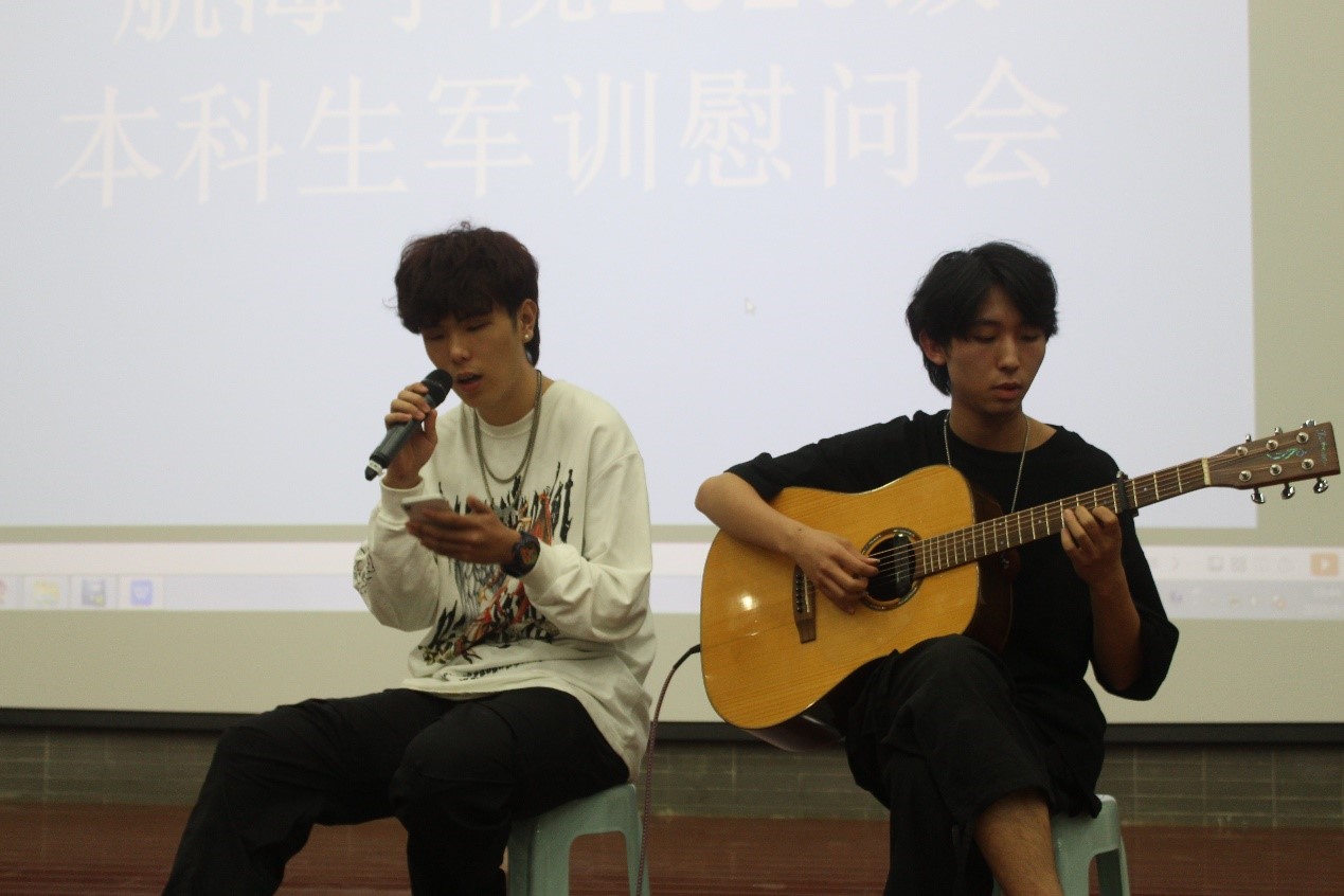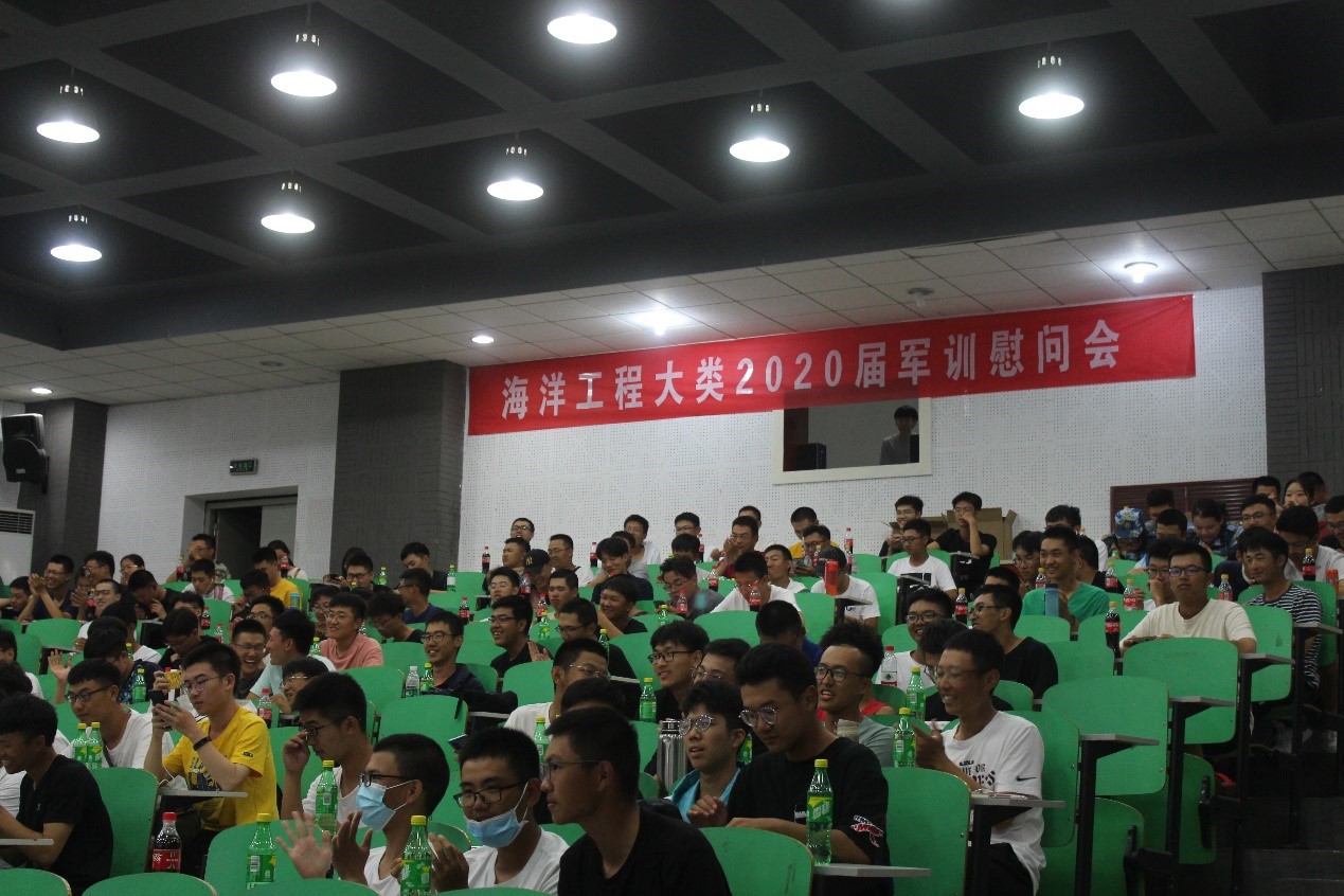 为了鼓励刚刚迈入大公司门,正在艰苦军训中的2020级海洋工程类新生,让大家感受老员工活的乐趣与激情,同时展示丰富多彩的公司文化。9月8日晚,mjm世界杯官网在长安校区教西A100报告厅举办了军训慰问演出,mjm世界杯官网经理助理张龙、员工事务主管崔晓、2020级海洋工程类辅导员崔晓东,以及军训教官代表出席本次活动。全体2020级海洋工程类新生观看此次慰问演出。