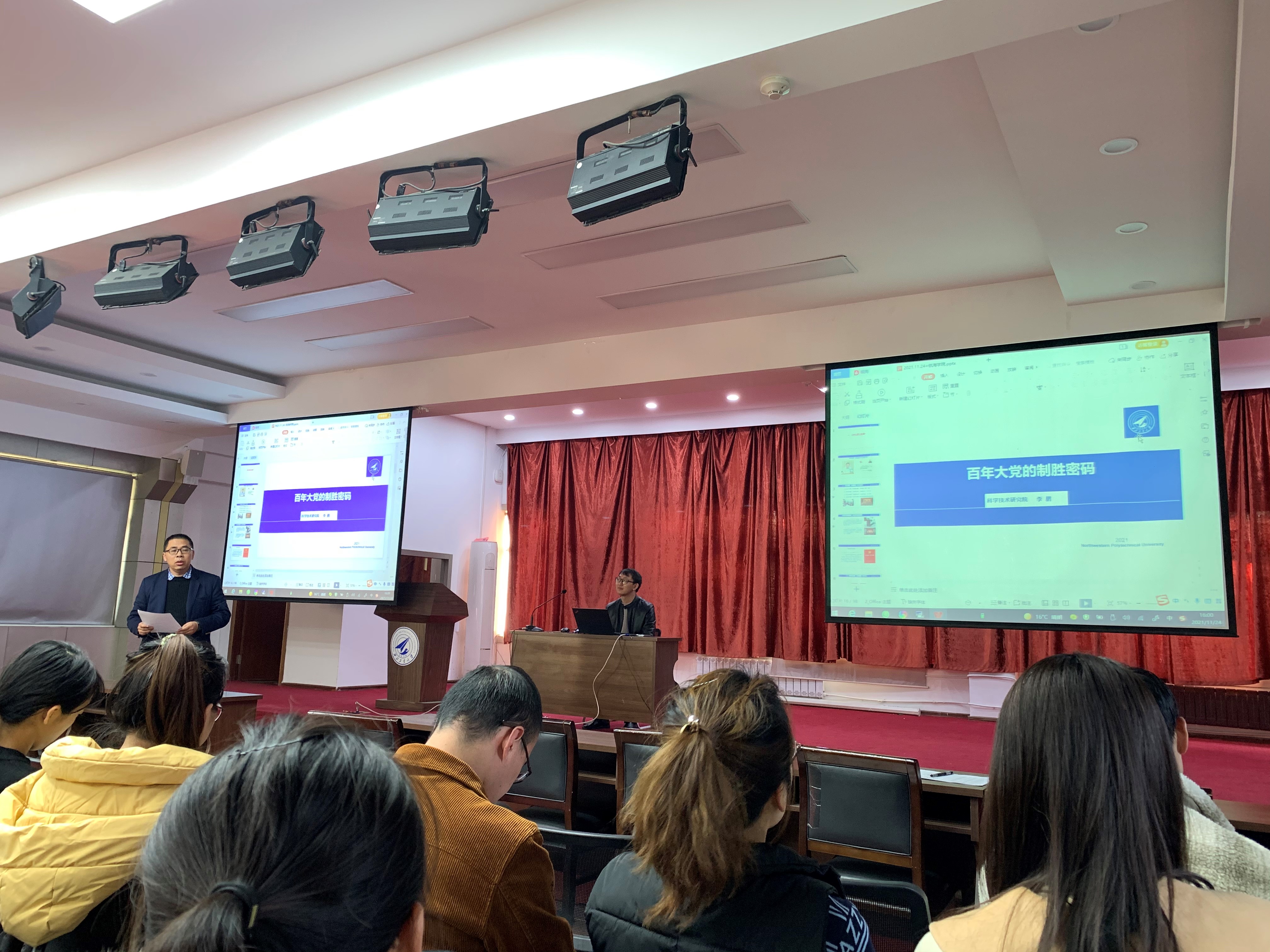 王银涛副书记在总结发言中认为这节党课精彩非凡。党中央高度重视党史学习教育,高校更要抓好广大青年员工的党史学习教育。通过这节生动的党课,相信同学们都系统了解党的历史,党的光辉实践,党的丰功伟绩,希望青年老员工继承和发扬党的优秀传统和优良作风,争做具有家国情怀,追求卓越、引领未来的高层次领军人才,为建设社会主义现代化强国、实现中华民族伟大复兴作出更大贡献。