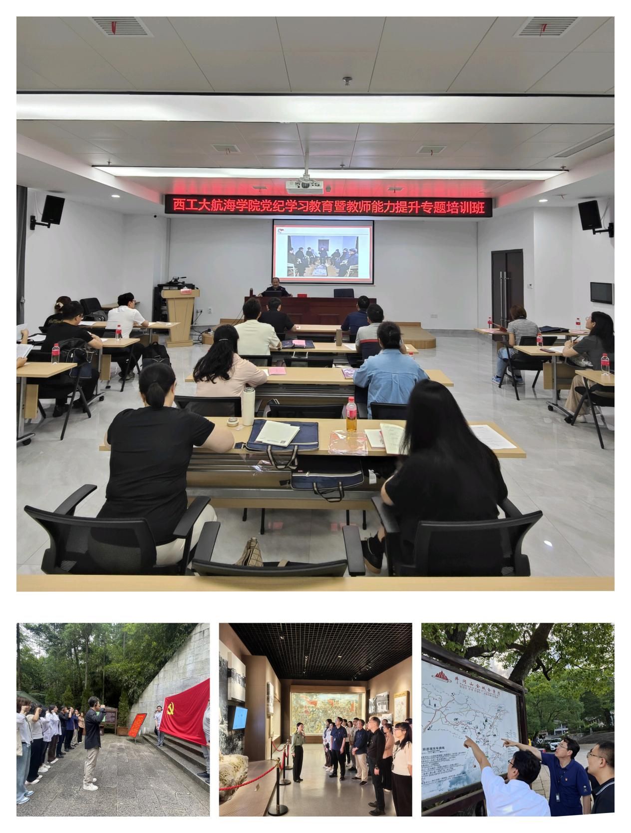 本次培训采取专题授课、现场教学、研读交流、情景教学等方式进行。邀请井冈山市委党校毛汝亭教授讲授专题课《井冈山斗争与井冈山精神》;围绕习近平总书记关于党的自我革命的重要思想、深刻认识党纪学习教育的重大意义及弘扬井冈山精神切实加强党性修养,结合在八百里井冈山革命根据地上每一个重大历史事件、每一处革命圣地、每一种革命精神、每一位革命英雄烈士、每一件革命文物,开展现场和情景教学;组织引导参训的党委委员、教工党支部书记和教师“且行且思且感悟,学史学纪学精神”,进一步涵养忠诚干净担当的政治品格,做合格党员教师。