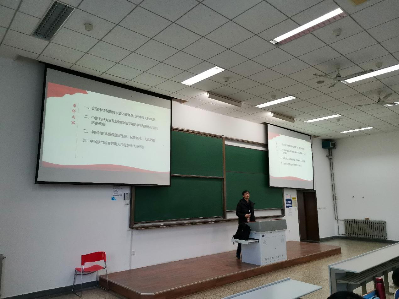 国家富强、民族振兴、人民幸福,这正是中国梦!当个人理想融入国家和民族的伟大梦想之中,就会汇聚起实现中国梦的强大力量。“空谈误国,实干兴邦”,要想实现伟大梦想,就必须进行伟大斗争、建设伟大工程、推进伟大事业。对此,陈老师介绍了革命先烈的无私奉献与艰苦奋斗精神,进一步增强了同学们对党的先进性和纯洁性的认识,激励同学们向榜样学习,为实现伟大梦想努力奋斗!