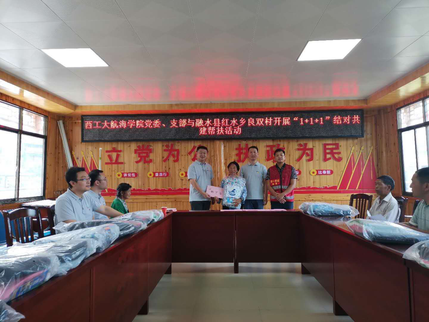 9月2日至5日,公司党委派出教工党支部书记、员工党员代表博士研究生、公司组织员一行6人,代表全院151名教工党员和37名参与“1+1+1”党员结对帮扶工作的员工党员,赴广西融水县红水乡良双村和安太乡三合村开展党建促扶贫支部共建活动,进一步落实师生党员与两村贫困生“1+1+1”党员结对帮扶计划,激发其内生动力,实现扶智扶志,助力两村1380户乡亲如期完成脱贫摘帽任务。