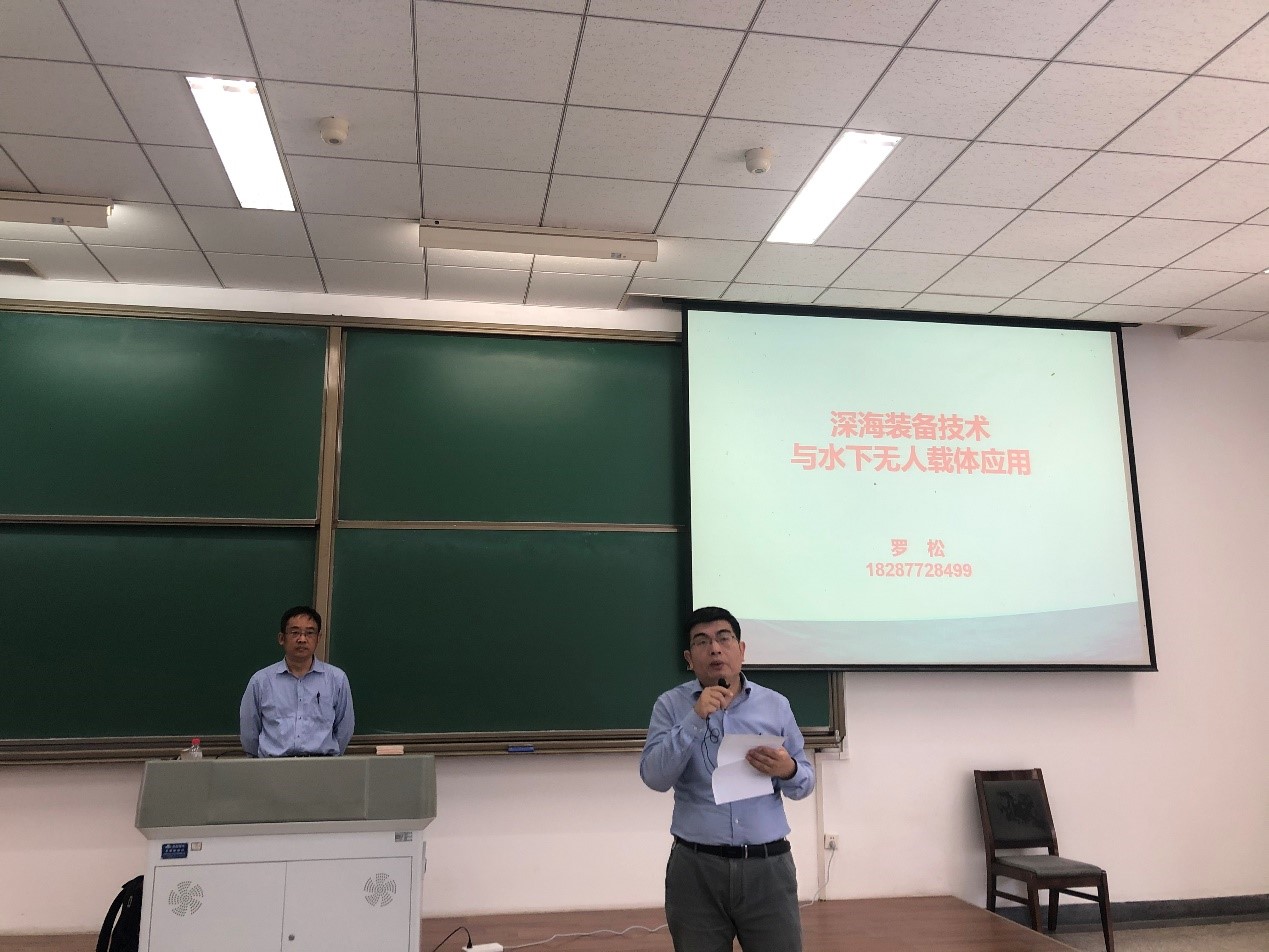 2022年5月6日下午14:00,在长安校区教西D201和教西D202教室迎来“感悟深蓝”课程第二轮的第三讲,由公司杰出员工、中船集团七五〇试验场副总工程师、技术总监罗松研究员主讲,主题为《深海装备技术与水下无人载体应用》。海洋工程类及其他公司共330余名一年级员工到课,mjm世界杯官网副经理曾向阳全程听课,并在课前详细介绍了罗松研究员的事迹。