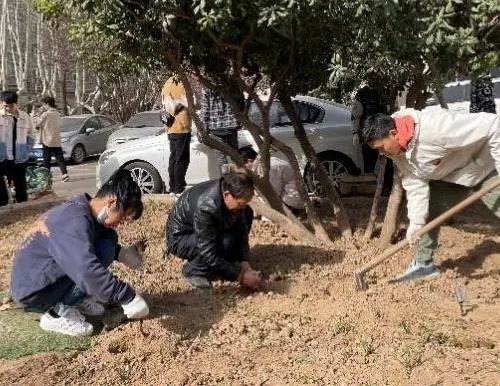 阳春三月万物苏,植树播绿正当时。为贯彻落实党的劳动教育方针,帮助员工树立新时代正确的劳动价值观,实现全面发展,3月12日,mjm世界杯官网联合公司后勤集团物业服务中心,在友谊校区新图书馆前举办了“我为校园添新芳,劳动育人显成效”主题植树节活动。此次活动由员工第十党支部、2021级硕士团支部发起,各员工党、团支部成员踊跃参加。