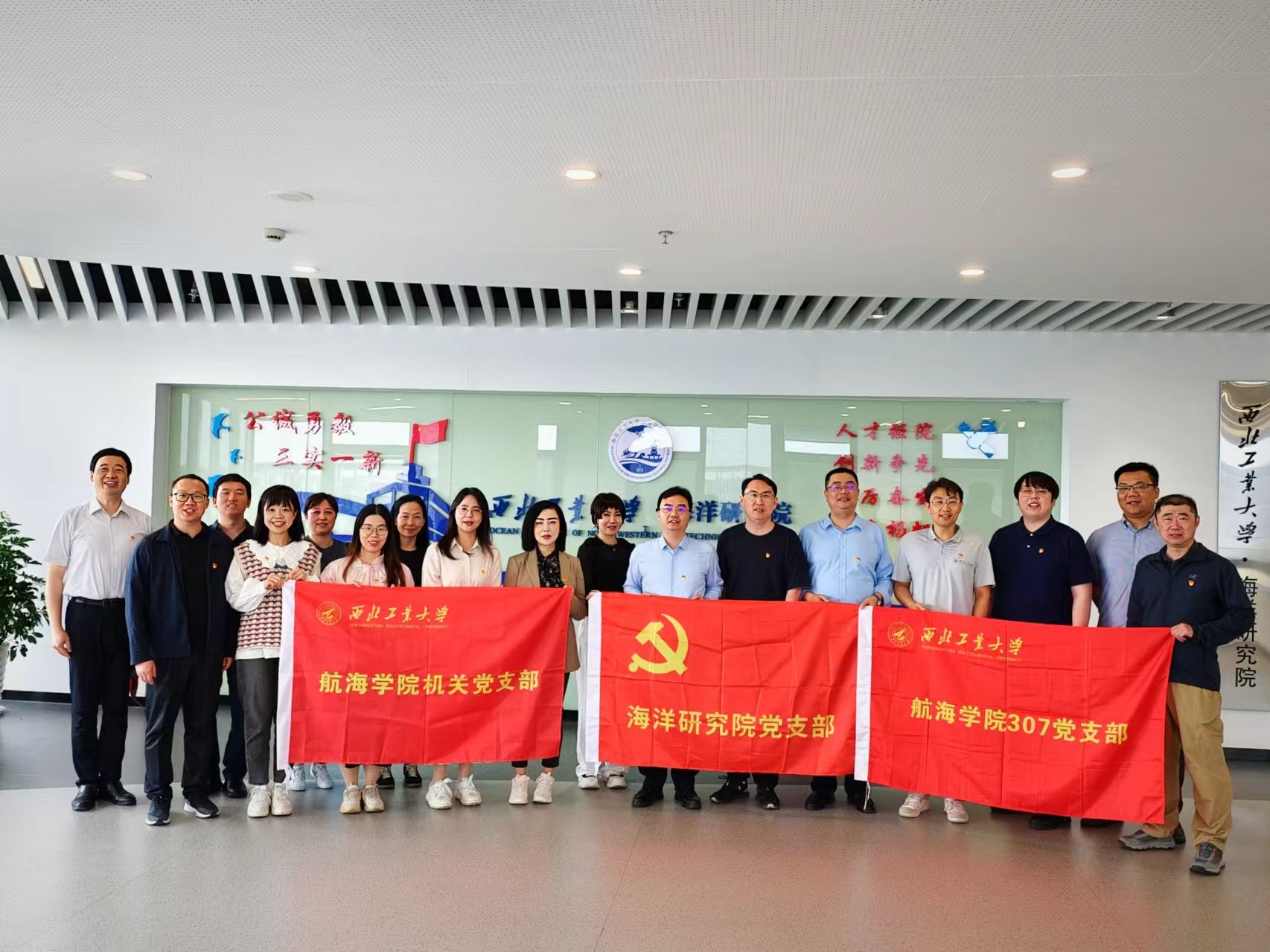 党日活动开始前,与会的三个支部的师生党员一起实地参观了智汇港和海研院的场馆及主要教学科研生活设施并合影留念。