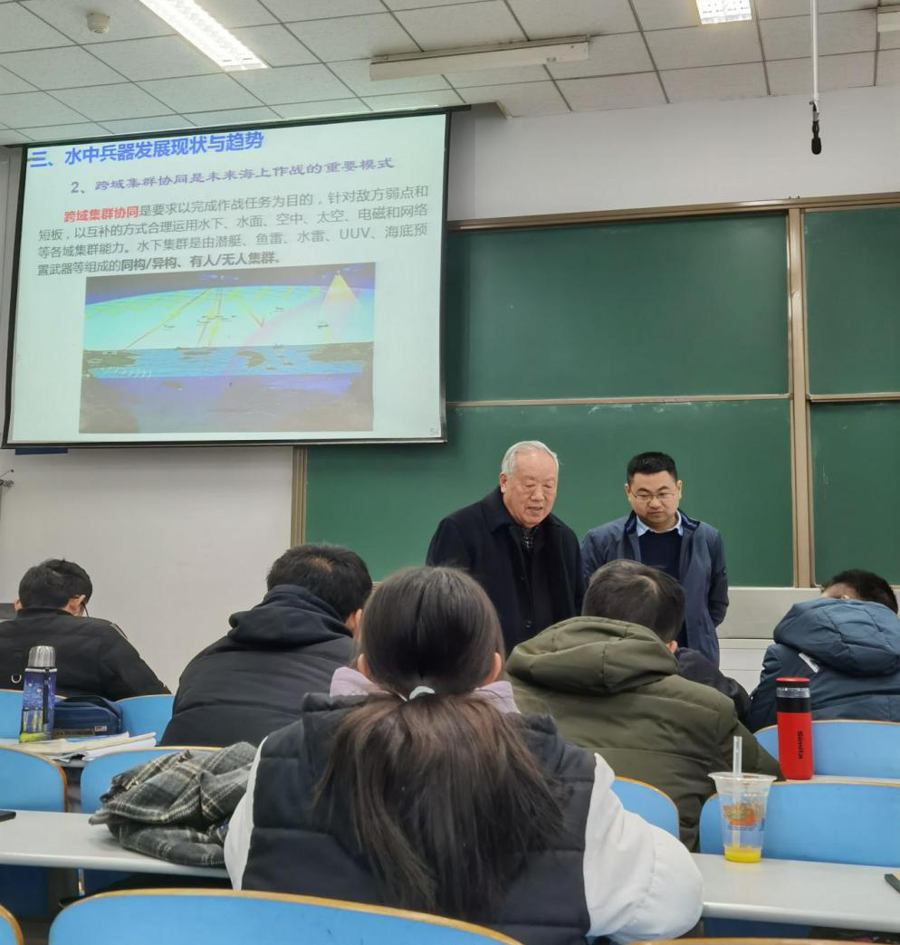 12月10日在长安校区教西D101教室,“海洋工程”大类新生研讨课《走向深蓝》系列课程由徐德民院士带来第十二讲《现代水中兵器》。徐院士从海洋强国战略、水中兵器概述、水中兵器发展现状与趋势、水中兵器涉及的科学技术问题、mjm世界杯官网对水中兵器发展的贡献五方面全面介绍了现代水中兵器状况,为海院学子们带来一场学术盛筵。