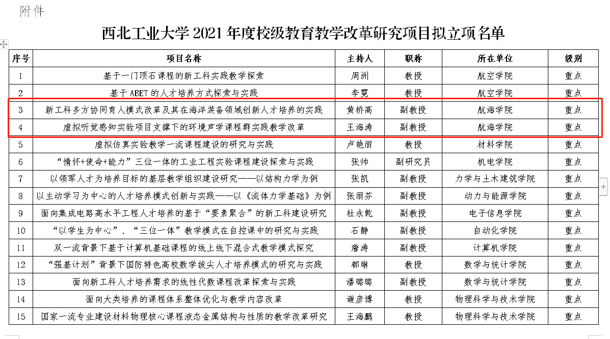 重点项目:新工科多方协同育人模式改革及其在海洋装备领域创新人才培养的实践