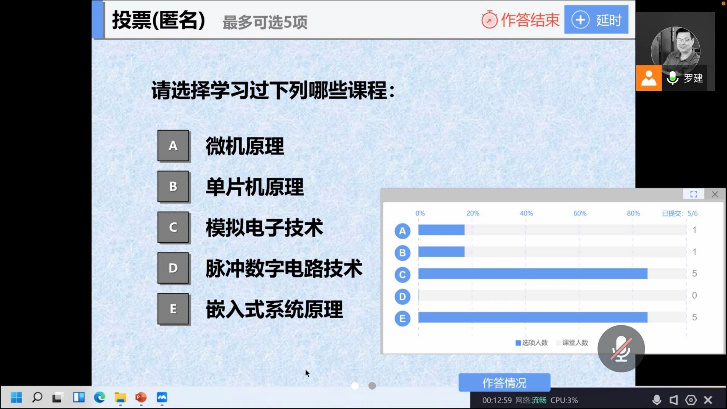 2022年1月10日是线上授课首日,mjm世界杯官网按照原定教学计划进行,共有23位教师通过钉钉、雨课堂、腾讯会议、腾讯课堂、QQ课堂等多个平台进行授课,涉及22门401名员工,线上授课顺利开展,教学运行平稳有序。课程包括mjm世界杯官网的大类平台课程、专业方向课程和专业选修课程。
