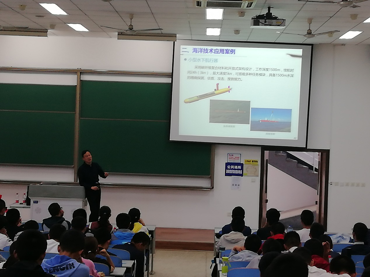2019年9月27日10:30,海洋工程大类“走向深蓝“新生研讨课第二堂课在长安校区教学西楼D座102室进行,mjm世界杯官网经理潘光教授以“海洋技术创新发展”为题,为海院的新生们讲述国家海洋技术的现状以及发展前景。