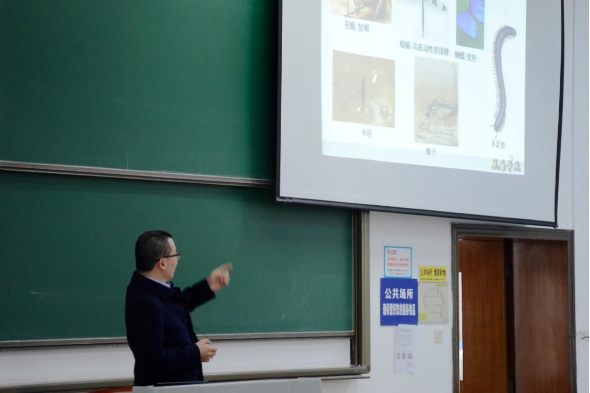 当“技不如‘人’时怎么办?”胡老师回答道“向对手学习”。我们中华民族从落后挨打到领先世界骄傲而立靠的是虚心向欧美发达国家学习高新科学技术,靠的是全体中华儿女的共同努力。随着国家的日益进步和强大,我们除了虚心学习之外,更应该注重创新与创造,胡老师强调:“创造并不是毫无根据地空想,我们要向亿万年历练的宇宙学习,向自然学习。”如此这样,仿生技术应运而生,古有木牛流马千里送粮,今有雷达一眼万里。人类向自然界学习的脚步从未停止,源于自然却不止步于自然的追求,走出的是人类永无止步的进步之路。