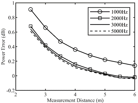图6 声功率估计误差随测试距离的变化