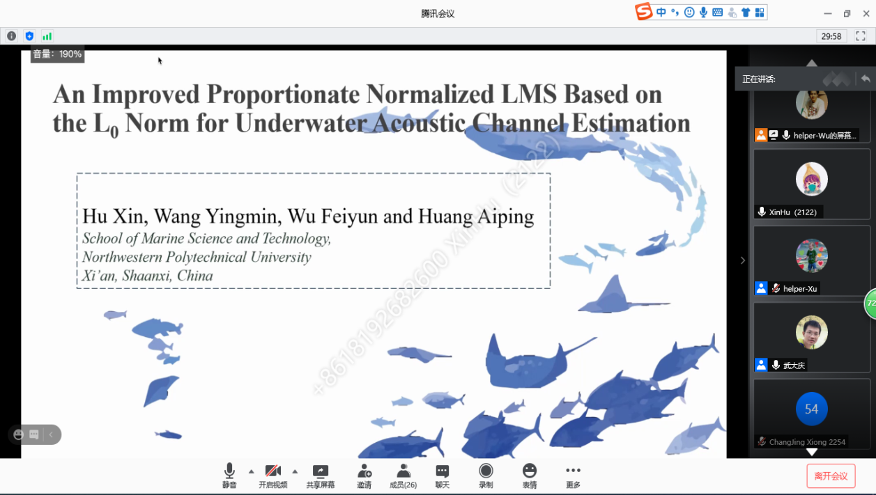 2020年,mjm世界杯官网克服国际疫情的严重影响,积极推动线上国际交流工作开展。在研究生赴国(境)外交流学习专项资金资助下,共组织36名员工参加了IEEE海洋学会议、IEEE进化计算会议、国际噪声控制工程大会、IEEE国际信号处理、通信和计算会议等高水平国际学术会议并做口头学术报告,充分展示海院学子扎实的科研能力、开阔的国际视野与关注学术前沿问题和国际最新研究成果的科研意识。