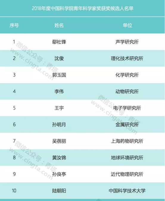 近日,中国科公司人事局正式公示了“2018年度中国科公司青年科学奖”获奖候选人名单,公司95级员工、中国科公司声学研究所鄢社锋研究员成功入选。据悉,中国科公司青年科学家奖是“中国科公司人才培养引进系统工程”的重要组成部分,每年评选,只有10个名额,本年度的10位获奖者均来自中国科公司各大研究所和中国科学技术大学,他们在各自领域取得突出成果,多位学者获国家杰出青年基金项目。鄢社锋研究员在众多杰青、优青的候选人中脱颖而出,既是对高研院涌现出的先进典型和作出突出贡献的青年科学家的表彰,也极大地激励了高研院的科研人员不断进取,积极创新,力争取得更大的成果。