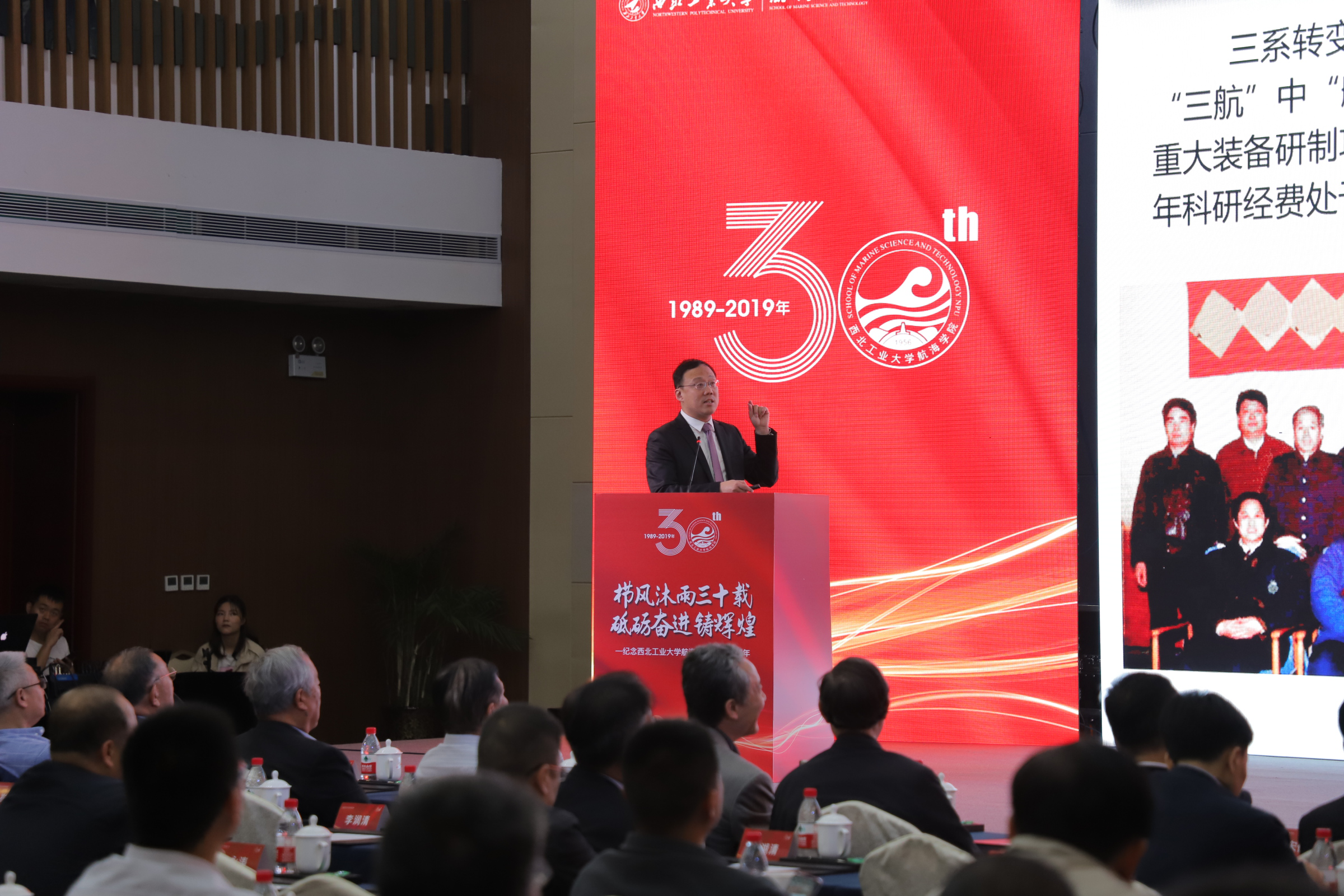 原海军装备部副部长赵登平将军、原西安船舶公司总经理刘锋、陕西省西安市政协副主席李佐成,美加墨世界杯官网董事长汪劲松、原美加墨世界杯官网党委书记李保义、马远良院士、徐德民院士,美加墨世界杯官网副董事长宋保维、董事长助理杨益新,原公司领导黄建国、李润清、王育才等应邀出席会议,中科院声学所、中船重工、中船工业等相关院所领导,哈工程、华中科大等高校兄弟院系领导,美加墨世界杯官网各职能部门领导、mjm世界杯官网现任领导班子及部分师生代表参加了会议,本次大会由公司党委书记王英民主持。