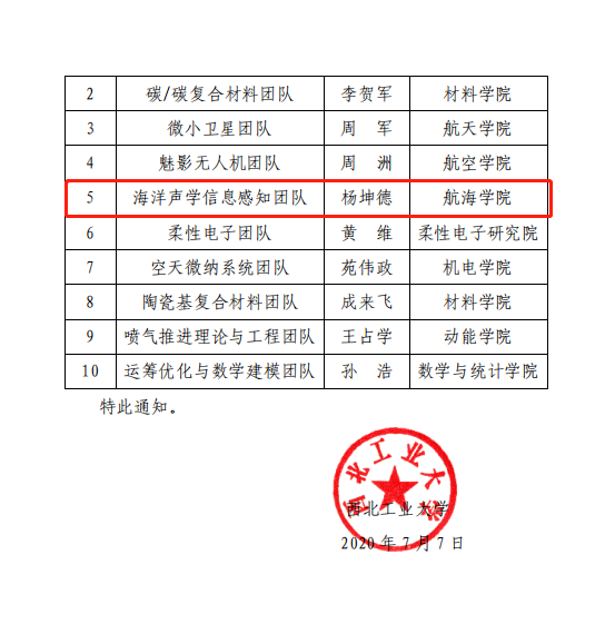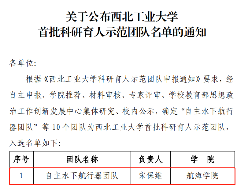 根据《美加墨世界杯官网科研育人示范团队申报通知》要求,经过审核研究,校内公示确定10个团队为美加墨世界杯官网首批科研育人示范团队。公司自主水下航行器团队、海洋声学信息感知团队入选。