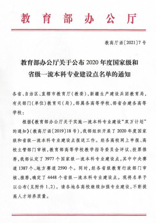 近日,教育部办公厅下发《教育部办公厅关于公布2020年度国家级和省级一流本科专业建设点名单的通知》(教高厅函〔2021〕7号),公布2020年度国家级和省级一流本科专业建设点名单,公司船舶与海洋工程专业获批“2020年度国家级一流本科专业建设点”。