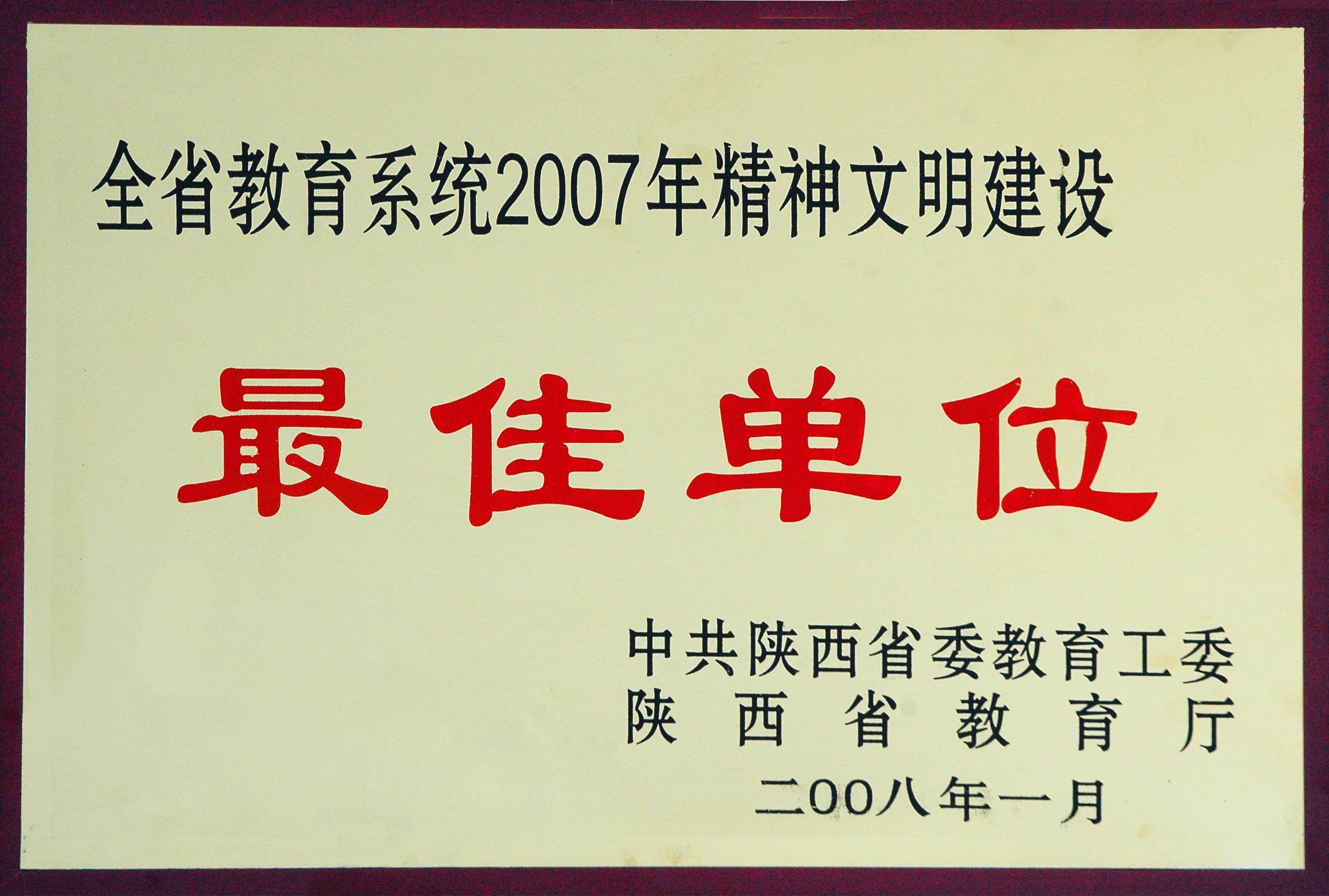 全省教育系统2007年精神文明建设最佳单位